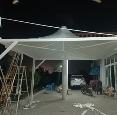 Showcasing our craftsmanship in tensile structures and awnings.