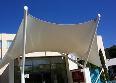 Customizable tensile structures that provide elegance and shelter for outdoor spaces.